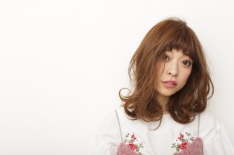 鎖骨ラインにレングスを設定し、レイヤーとパーマで肩口でハネさせるスタイル
