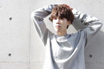 ソフトに2ブロックにし、重めに前髪をつくり強めにパーマをかけたスタイル