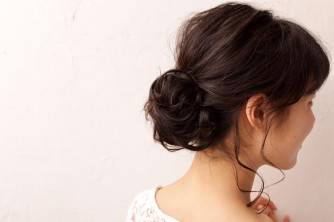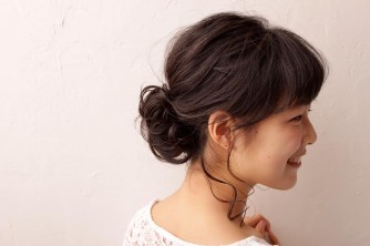 うしろにクシャっと一つにまとめたスタイルです。