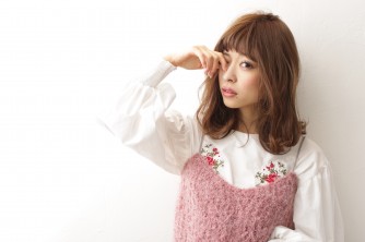 鎖骨ラインにレングスを設定し、レイヤーとパーマで肩口でハネさせるスタイル