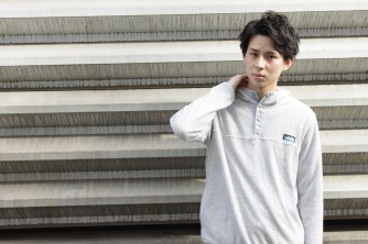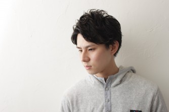 耳回り、襟足をすっきりさせ、前髪長めで立ち上げて流すスタイル